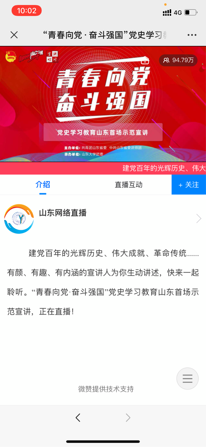 2021年4月16上午9:30-11:30,于山东网络直播平台,365英国上市有序组织员工收看了山东省首场“青春向党,奋斗强国”示范宣讲直播活动。此次活动旨在让同学们更加认识党,了解党,坚持学史明理、学史增信、学史崇德、学史力行,深刻领会习近平总书记的重要讲话的丰富内涵,扎实党史学习教育。