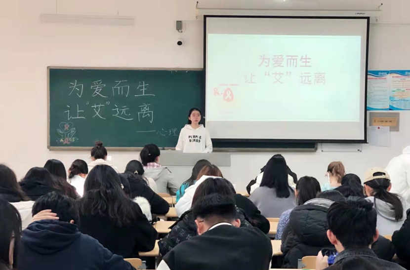 活动伊始,主讲人首先对艾滋病知识进行简单科普,然后向同学们介绍了与艾滋病人的相处方法和艾滋病的防治方法。活动过程中主讲人通过击鼓传花等小游戏方式邀请同学们回答相关问题,课堂气氛活跃。