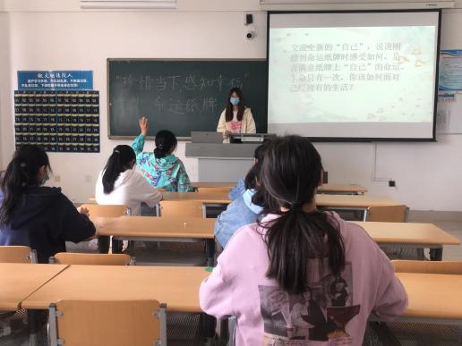 为了让同学们学会珍惜当下的美好生活,感知幸福,懂得命运掌握在自己手中,从而用积极的态度面对人生,365英国上市于2022年5月10日在博文楼419教室举办了“珍惜当下,感知幸福”命运纸牌活动。