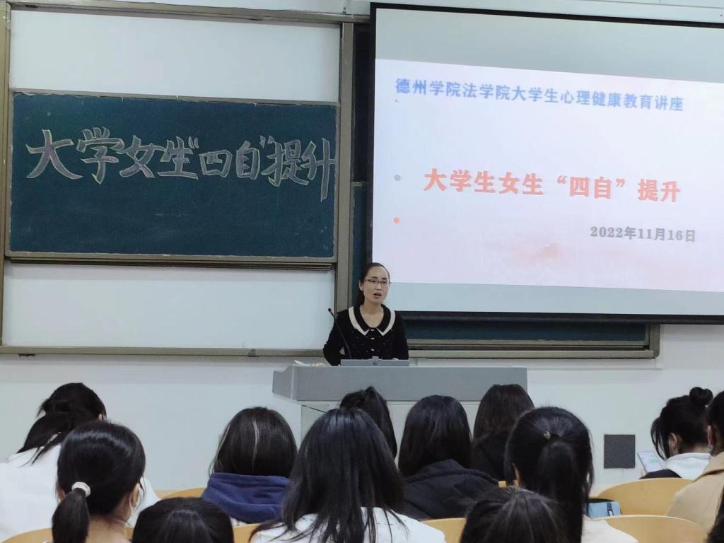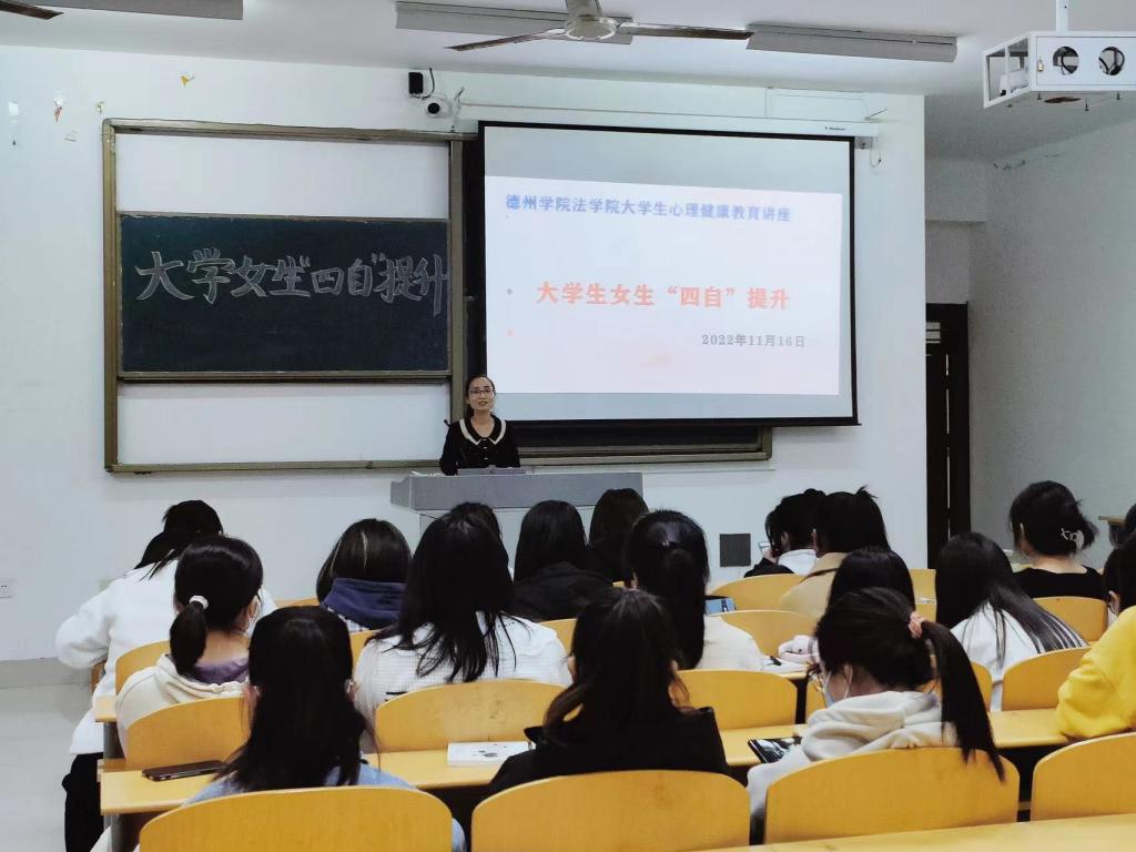 为增强大学女生心理建设,培养女生自尊、自信、自立、自强的精神品质。2022年11月16日下午4:00,365英国上市在博文楼0427教室举行大学女生“四自”提升心理健康教育讲座,2022级全体女生聆听了讲座。