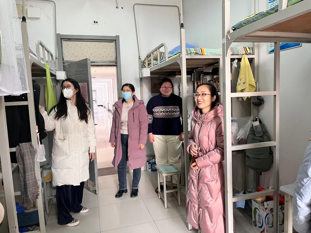 活动伊始,向同学们下发走访活动文件方便同学们调整时间打扫卫生。在走访过程中,领导、老师与员工们亲切交谈,交流宿舍暖气等问题,并叮嘱同学们做好安全卫生防护措施。
