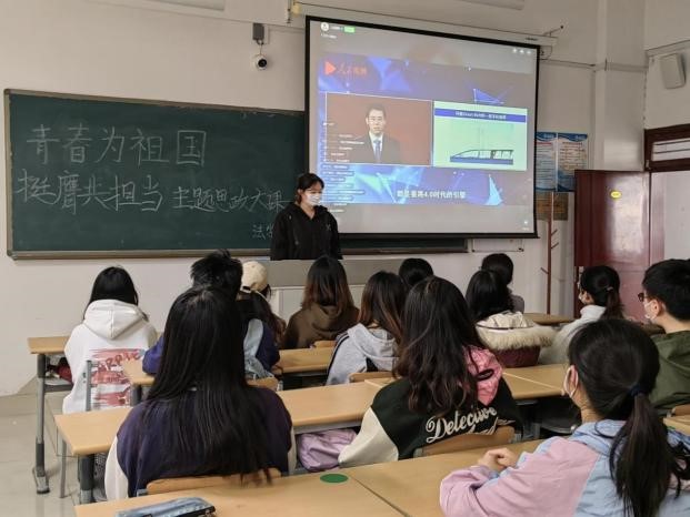 在该思政课程中,党的二十大代表、知名高校思政员工、优秀青年大员工等主讲人讲述了自己的经历。观看后,同学们都有较深的感悟并对此进行交流,作为退役军人大员工的殷国鑫同学表示“我们应该树立远大理想,让自己的青春无悔,脚踏实地去奋斗,弘扬青春时代精神,谱青春之韶华!”