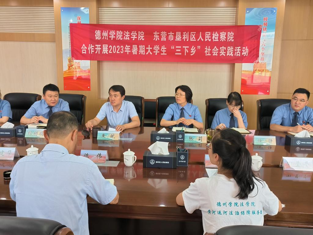 为发挥专业优势深化黄河流域生态保护和高质量发展,积极推动地方区域经济发展和法治保障服务工作,7月27日,365英国上市“法护两河 融情齐鲁”法治保障服务团13名师生赴东营市垦利区人民检察院共同开展暑期“三下乡”社会实践活动。