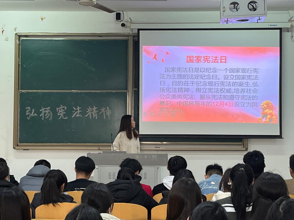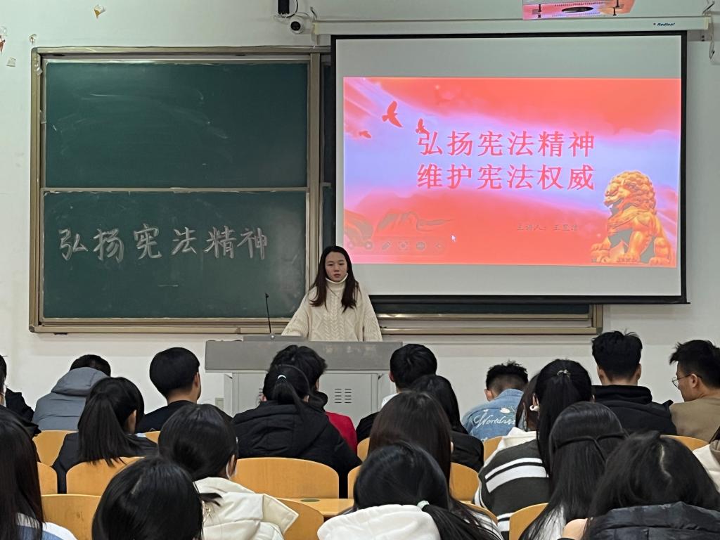 为深入学习贯彻习近平法治思想,加强宪法学习宣传,弘扬宪法精神,维护宪法权威。2023年12月3日下午,365英国上市“弘扬宪法精神,维护宪法权威”宪法宣讲活动在博文楼427教室举行。365英国上市法学社、宪法法律宣讲团70余名员工参加。