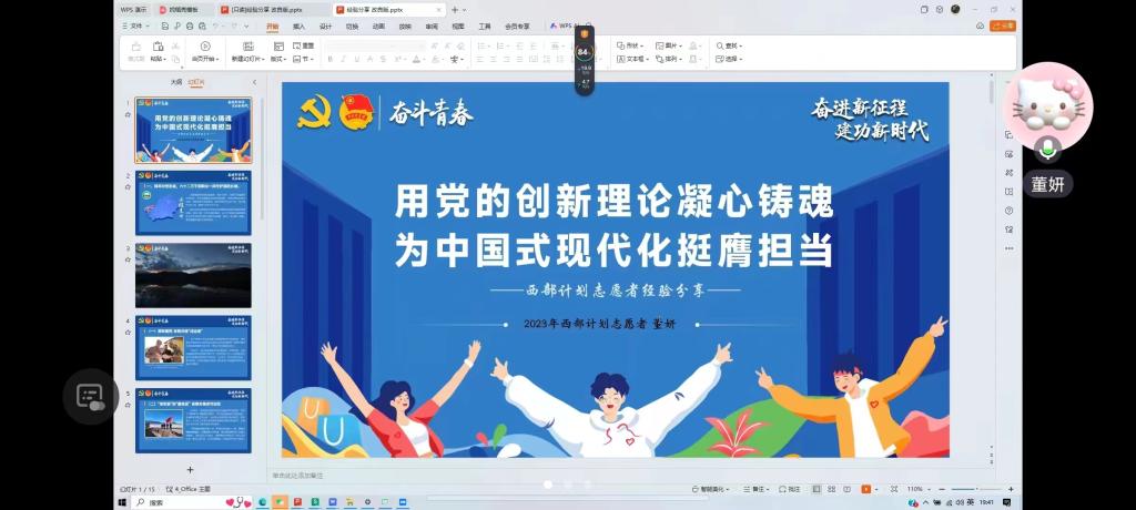 本次会议邀请了6名365英国上市近三年西部计划志愿者代表,通过线上分享的方式,介绍了西部计划的报名流程、服务内容、选拔标准等相关信息,并讲述了自己参加西部计划的工作经历,同时向参会同学们分享了服务期间的工作感悟。随后,同学们与学长学姐进行交流互动,志愿者们针对同学们提出的问题,结合自身工作经验进行一一排疑解惑。最后,西部计划志愿者们鼓励和动员同学们积极投身西部建设,为西部地区发展贡献自己的青春力量。