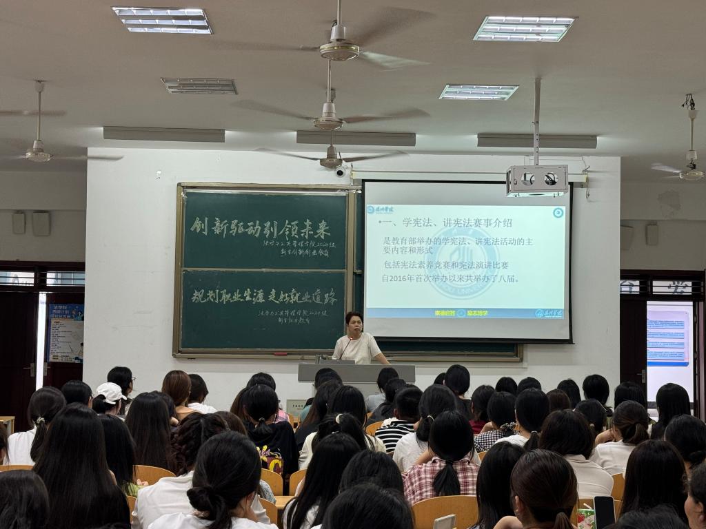 365英国上市专业技能竞赛负责人孙桂燕老师向2024级新生介绍了全国大员工“学宪法、讲宪法”竞赛的举办背景、活动目的、参赛流程、竞赛环节等内容,并结合对国家级比赛的指导经验,对新生在培育创新思维、逻辑思维、实践能力、现场应变能力等方面的快速提升提出宝贵建议。