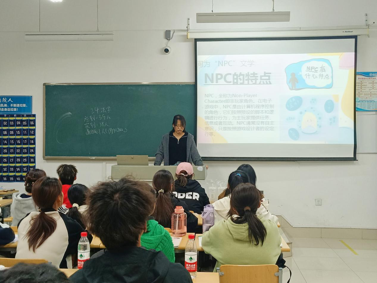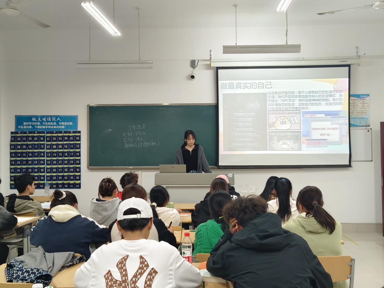 活动伊始,主讲人带领同学们围绕“你眼中NPC具有什么特征”这一问题展开了热烈的讨论,大家积极分享了自己对于“NPC”文学的见解。随后,主讲人向同学们介绍了网络用语“NPC”的定义与特点。NPC,non-player character的缩写,意思是非玩家角色,指游戏中由程序员写好了任务和对话,只等玩家来触发的角色,在现实生活中,NPC的引申义往往用来代指缺少独立意识、思考和灵魂的人。随后,主讲人通过播放喜剧人付航脱口秀视频,展示了他从高考失利到取得节目冠军,成为自己人生主角的经历,引导同学们要以正确的态度看待“NPC”文学,理解和接纳自己的不足,帮助同学们认识到每个人都拥有过好自己精彩人生的决定权,鼓励同学们勇敢表达自己,做自己人生的主角。