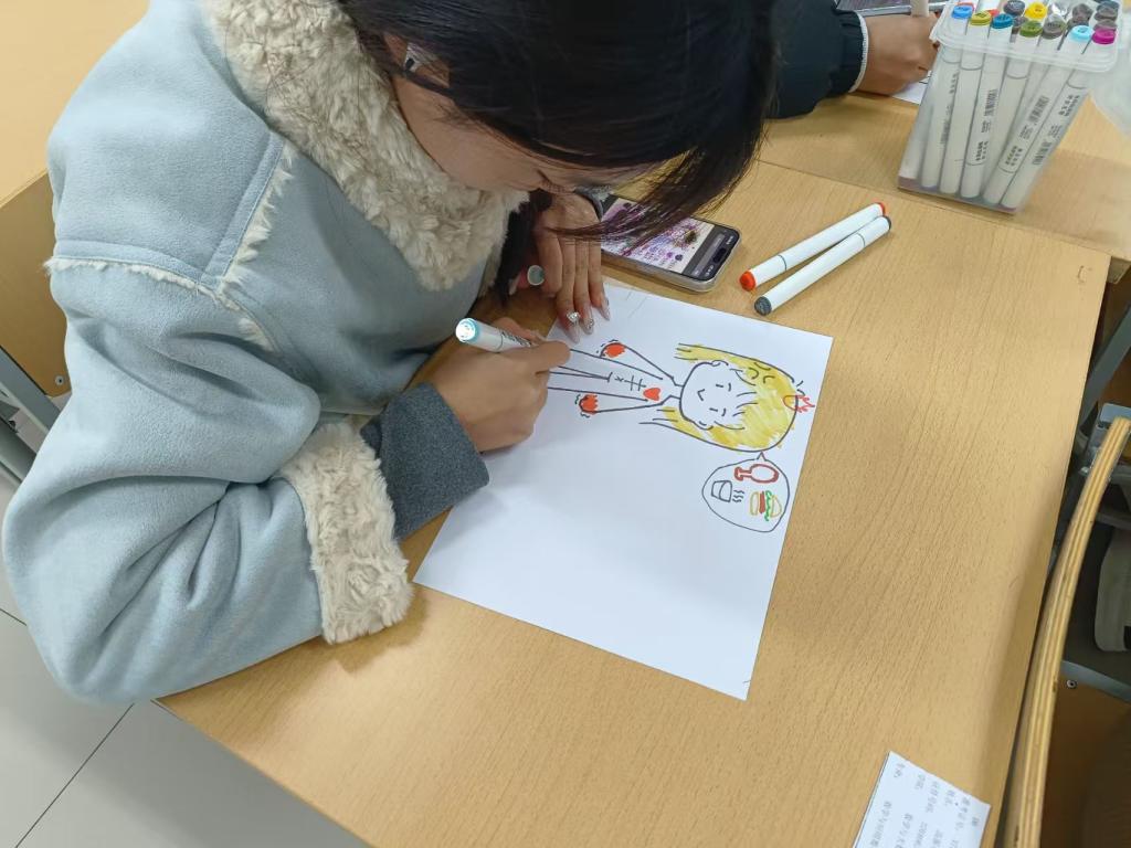 活动伊始,主讲人为同学们详细讲解了情绪与身体感知之间的内在联系,介绍了通过绘制身体情绪地图来映射情绪的独特愈疗方式。随后,同学们在主讲人的引导下,静下心来感受身体内不同情绪的起伏变化,将不同的情绪体验通过色彩与线条呈现在身体轮廓图上,绘制出属于自己的情绪疗愈地图。最后,同学们分享了各自的疗愈地图,并进行了关于如何调节自身情绪的交流讨论。主讲人也指出只有学会正确地觉察和接纳自己的情绪,才能够学会运用情绪,拥抱最真实的自我。