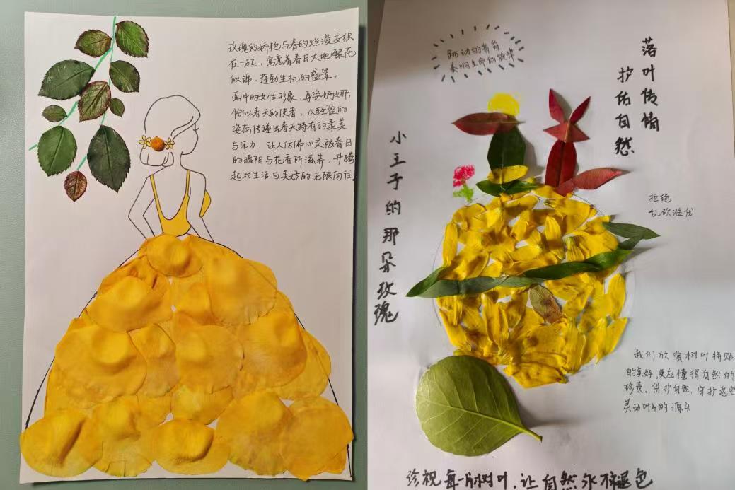 在为期一周的创作周期中,参与者化身"自然疗愈师",通过校园植物采集、素材脱水处理、构图设计等环节,将生态保护理念与情感表达深度融合,将自然之美融入艺术创作。有的作品以层叠叶片勾勒山水意境,有的用花瓣拼贴出斑斓蝶影,还有的以干草编织成抽象纹样。一幅幅作品或展现对生态保护的思考,或传递对生活的热爱,或寄托内心的宁静与希冀,既彰显了同学们的巧思妙想,也体现了自然与艺术的深度交融。