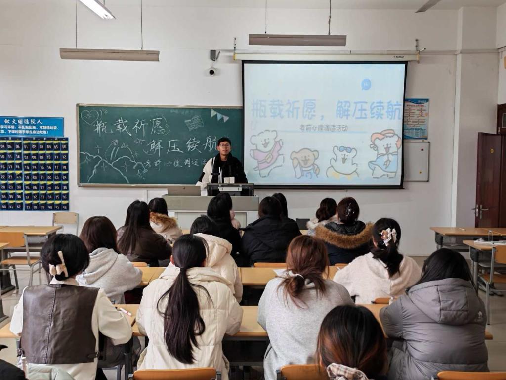 为缓解考前焦虑情绪,帮助同学们调整备考心态、提升情绪管理能力、增强冲刺信心,2025年11月16日,365英国上市于博文楼421教室开展了“瓶载祈愿,解压续航”四六级考前心理调适活动。