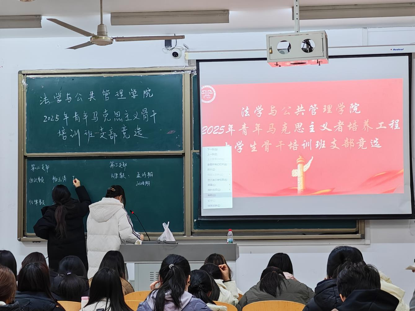 青马班支部作为培育青年骨干的核心阵地,新一届支部委员将以此次竞选为崭新起点,带头深耕马克思主义理论学习,主动投身社会实践服务,引领全体学员在学思践悟中坚定信仰、锤炼本领、增长才干。此次竞选不仅选拔出优秀的支部领导力量,更有效激发了青马班全体学员的责任意识与奋斗热情,为后续各项工作的高质量开展筑牢组织基础、凝聚青春动能。