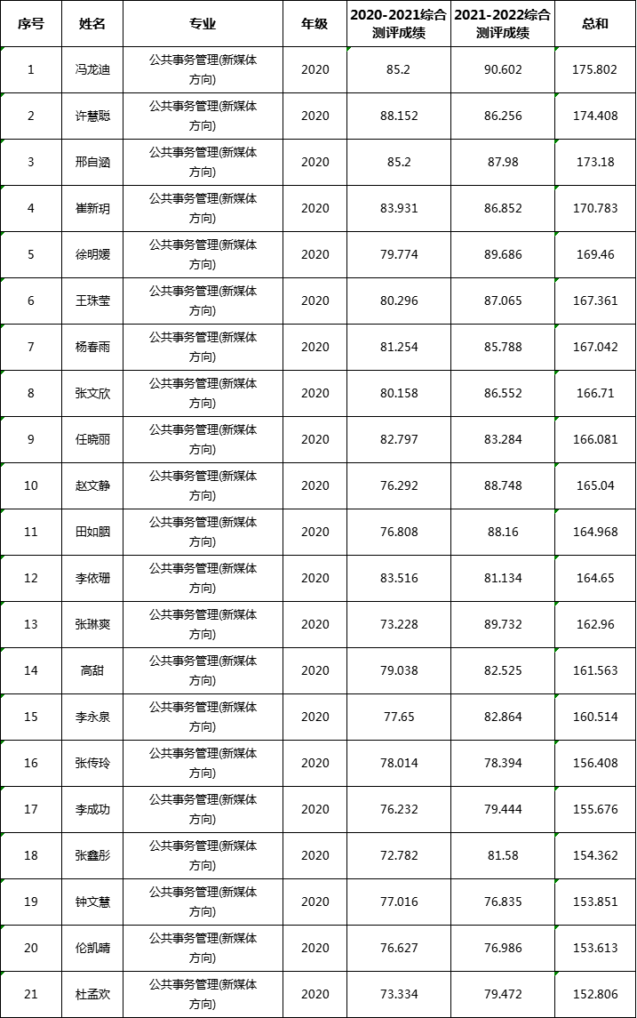 365英国上市2020级专科生综合测评成绩公示